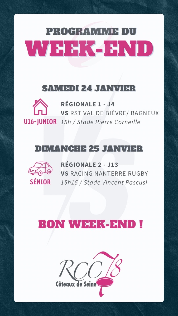Venez nombreux soutenir nos équipes et porter haut les couleurs du RCC78 🩷🩶💚